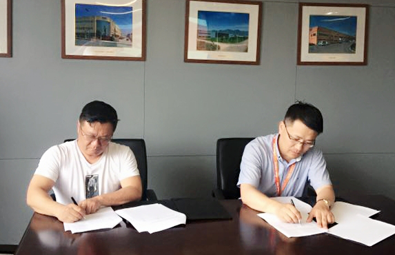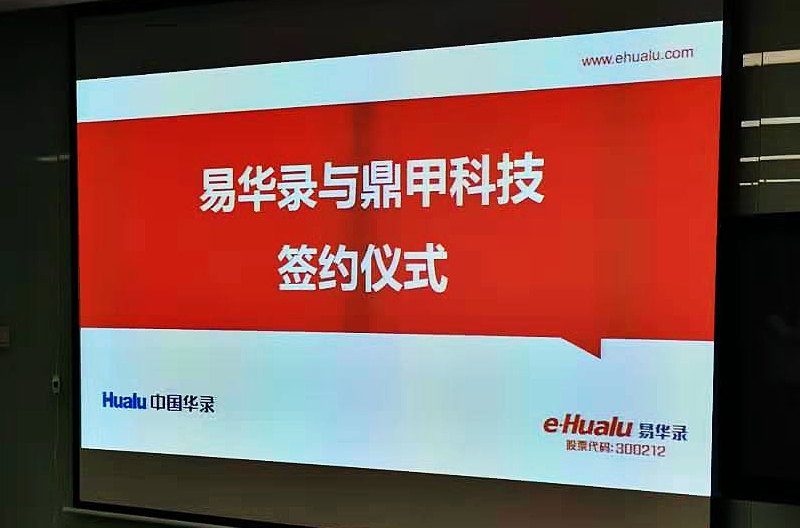 鼎甲產品總監汪潼(左)與易華錄D-BOX事業部常務副總李德杰(右)簽約
