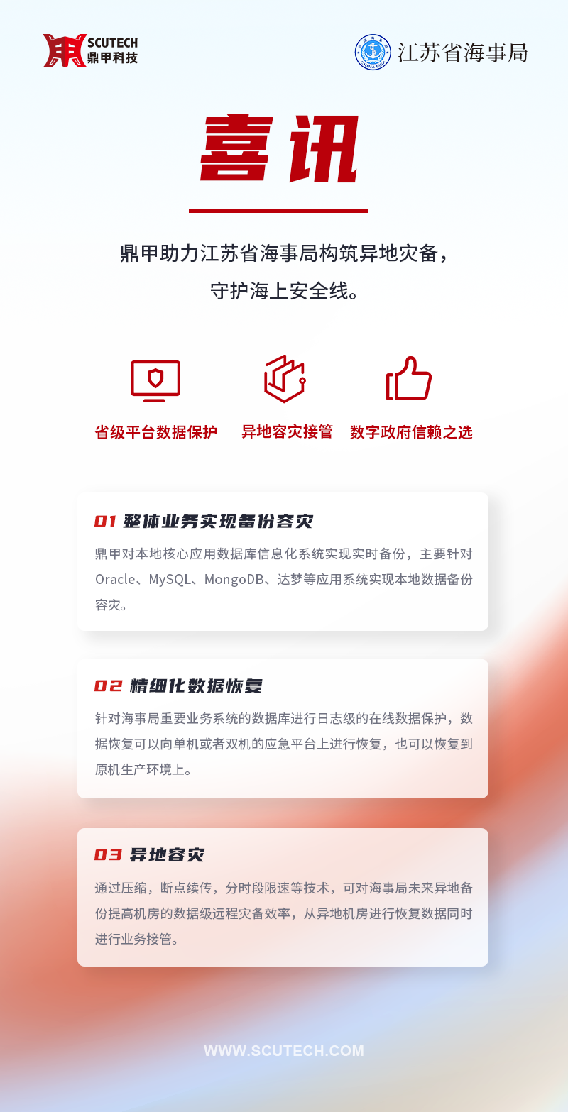 江蘇省海事局 | 鼎甲助力省級海事局構筑異地災備,守護海上安全線!