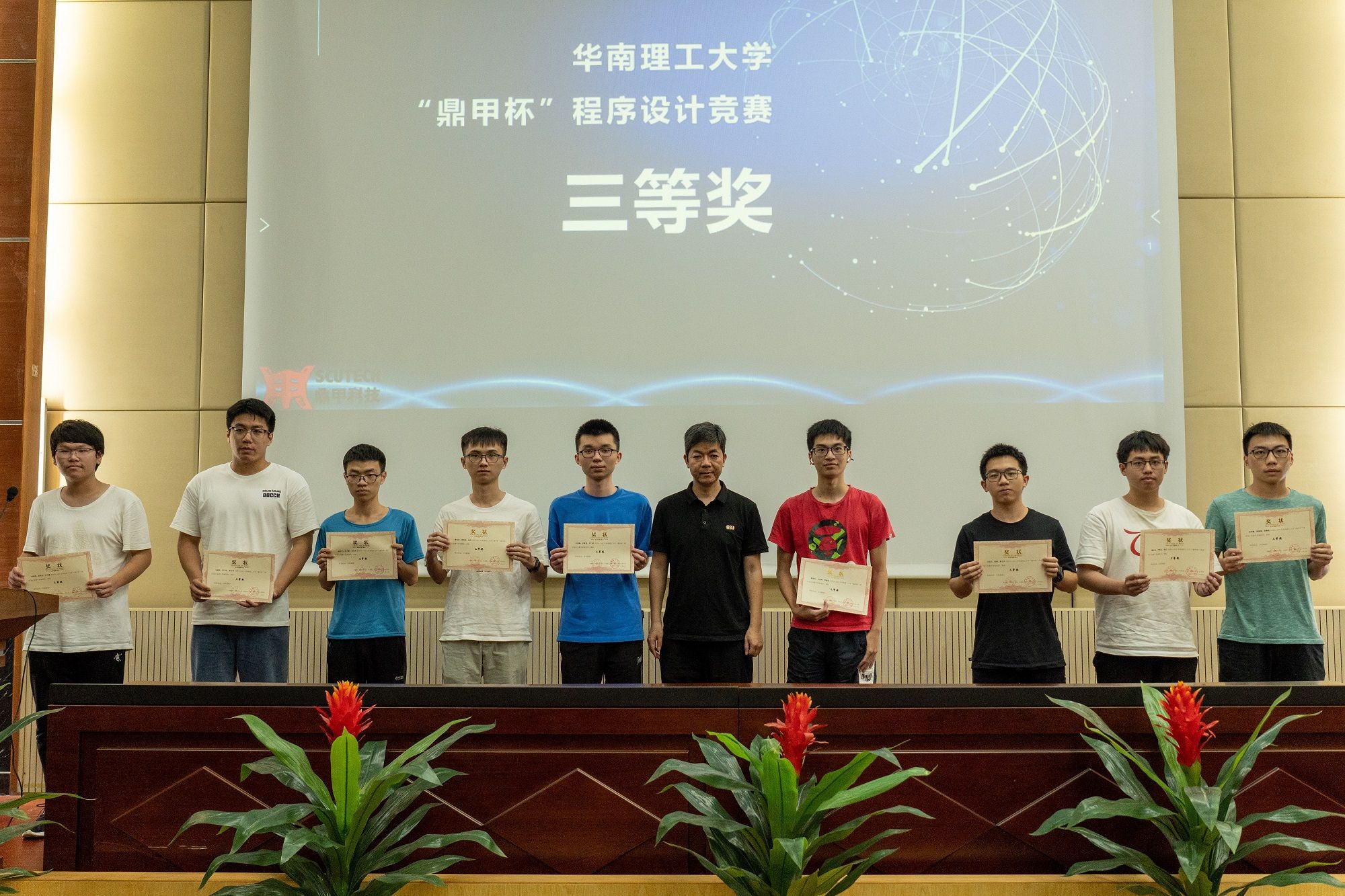 5月26日,由華南理工大學(xué)軟件學(xué)院主辦、鼎甲協(xié)辦支持的華南理工大學(xué)“鼎甲杯”程序設(shè)計(jì)競(jìng)賽圓滿落幕。鼎甲產(chǎn)品研發(fā)總裁馬立珂,總裁助理、人力資源總監(jiān)劉玉玉,高級(jí)軟件工程師洪清欽作為企業(yè)代表出席競(jìng)賽頒獎(jiǎng)典禮,見(jiàn)證這一重要時(shí)刻。