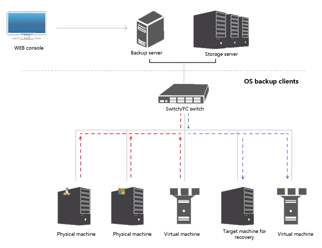It periodically backs up the OS according to your backup strategy and supports both full and incremental backup, which significantly shortens backup window and the volume of data to back up.