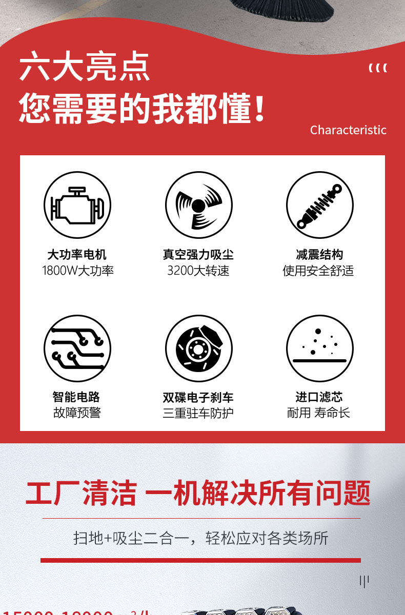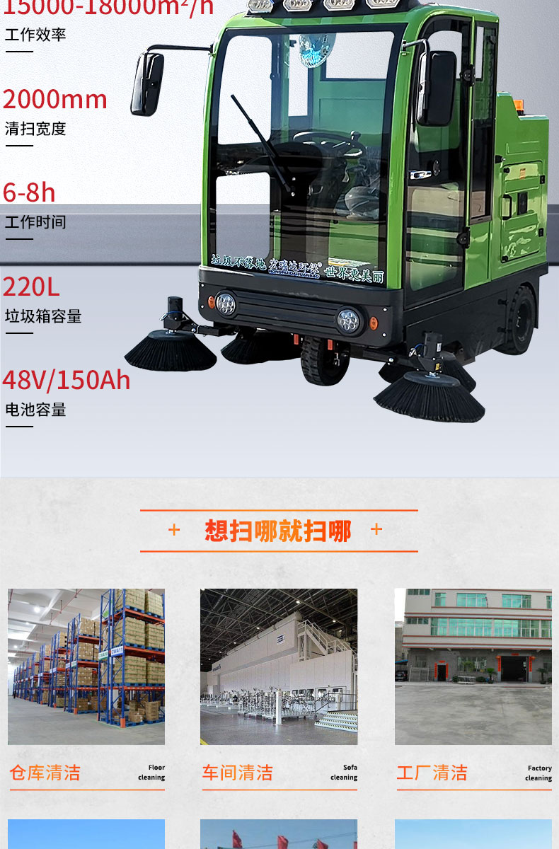 HRD-2000S全封閉駕駛式掃地車(chē)配置雙風(fēng)機(jī)系統(tǒng),具有強(qiáng)大的吸塵能力,清掃寬度大可達(dá)2米,一小時(shí)工作量相當(dāng)于6-8名清潔工的工作量,可連續(xù)工作6-8小時(shí),特別適合煤礦、水泥廠、雕刻廠、面粉廠、建材廠、金屬冶煉廠、工廠車(chē)間、商場(chǎng)、車(chē)站、廣場(chǎng)公園、景區(qū)等場(chǎng)所使用。