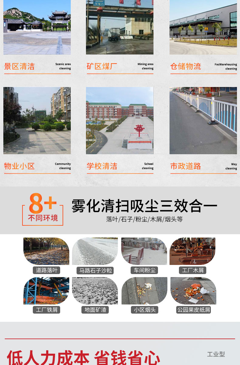 - HRD-1050手推式無(wú)動(dòng)力掃地車(chē)節(jié)能低碳、無(wú)噪音、無(wú)排放、無(wú)污染,清掃寬度可達(dá)1050mm,可以長(zhǎng)時(shí)間連續(xù)工作,灰塵 石子 落葉 煙頭煙灰 木屑 瓜果等一掃而凈,特別適合煤礦、水泥廠、雕刻廠、面粉廠、建材廠、金屬冶煉廠、工廠車(chē)間、商場(chǎng)、車(chē)站、學(xué)校、機(jī)場(chǎng)外圍、廣場(chǎng)公園、景區(qū)等場(chǎng)所使用。